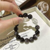 Silver obsidian black hair crystal bracelet 13
